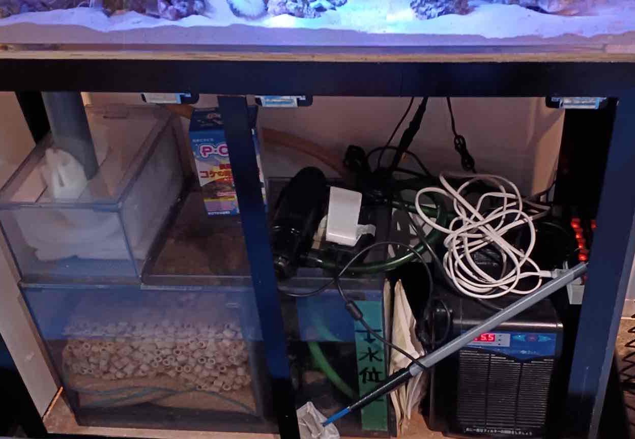 過去に遭遇した事例からトラブル対処を学ぶ、その2。 ↑現場の状況はこのようなOF水槽で台の中・・・
