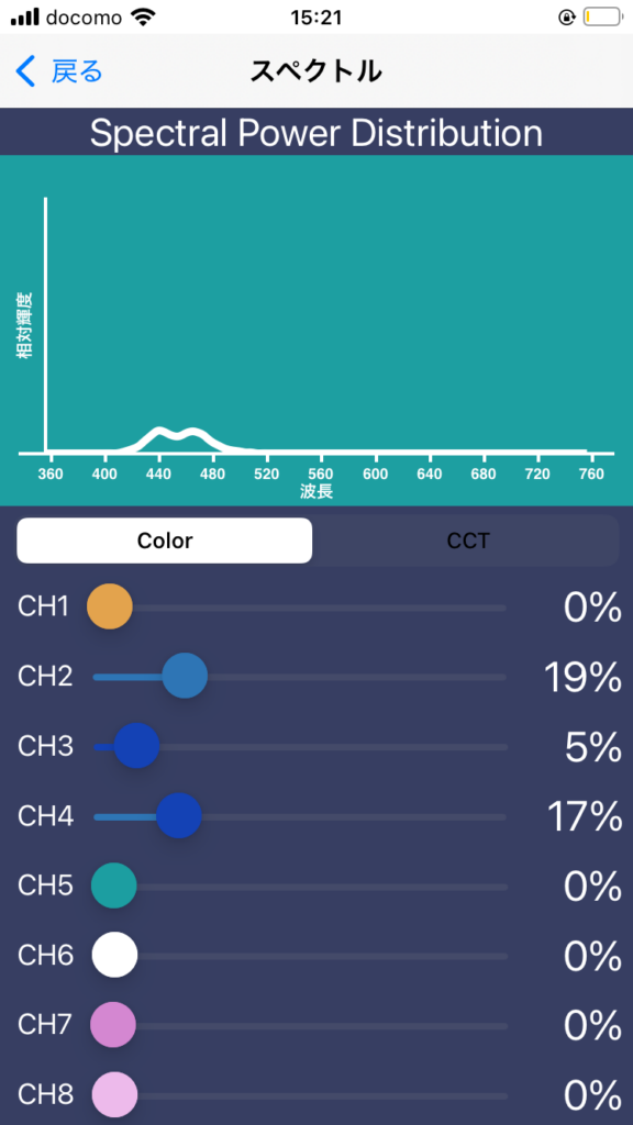 ちなみにシステムLEDの『CoreX200』(volxjapan)の波長設定画面がコチラ↓